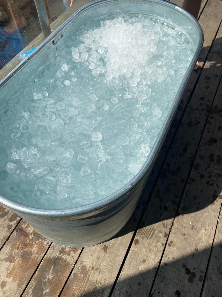 We all helped to fill the aluminium bath with several bags of ice! What in the world were we all letting ourselves in for?